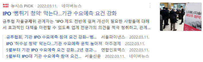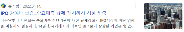 물론 아래 뉴스처럼 기업의 가치보다 높게 청약되는